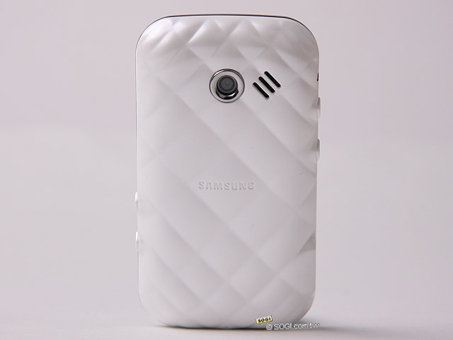 ▲SAMSUNG Diva S7070 背蓋採用白色珍珠烤漆,搭配立體菱格紋設計,似乎散發出與 CHANEL 相似的時尚感。