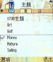 Panasonic X700 已經內建多組主題,可以改變整個選單的顯示背景,是最近智慧型手機必備的功能,甚至一般的手機都有這項功能了。而 X700 也可以自己再做喜歡的主題,透過無線傳輸或是 USB 傳到手機當中,個人化程度頗高。