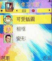 Panasonic X700 手機當中,內建 Photo Base ( for Panasonic) 的圖片編輯程式,可以操作圖片旋轉的功能、調整亮度和對比度、消除紅眼、裁減,添增可愛的插圖、相框和變形等,可以補足相機功能不足之處。