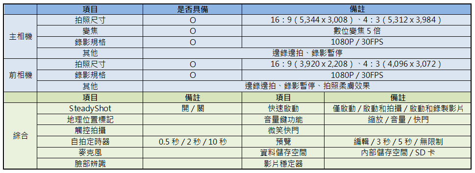 點評:支援 Hybrid AF 混合式自動對焦,實測對焦速度還滿快且精準。前後相機的成像不錯,能支援 4K 錄影,但所使用格式無法與其他裝置共用稍嫌可惜。