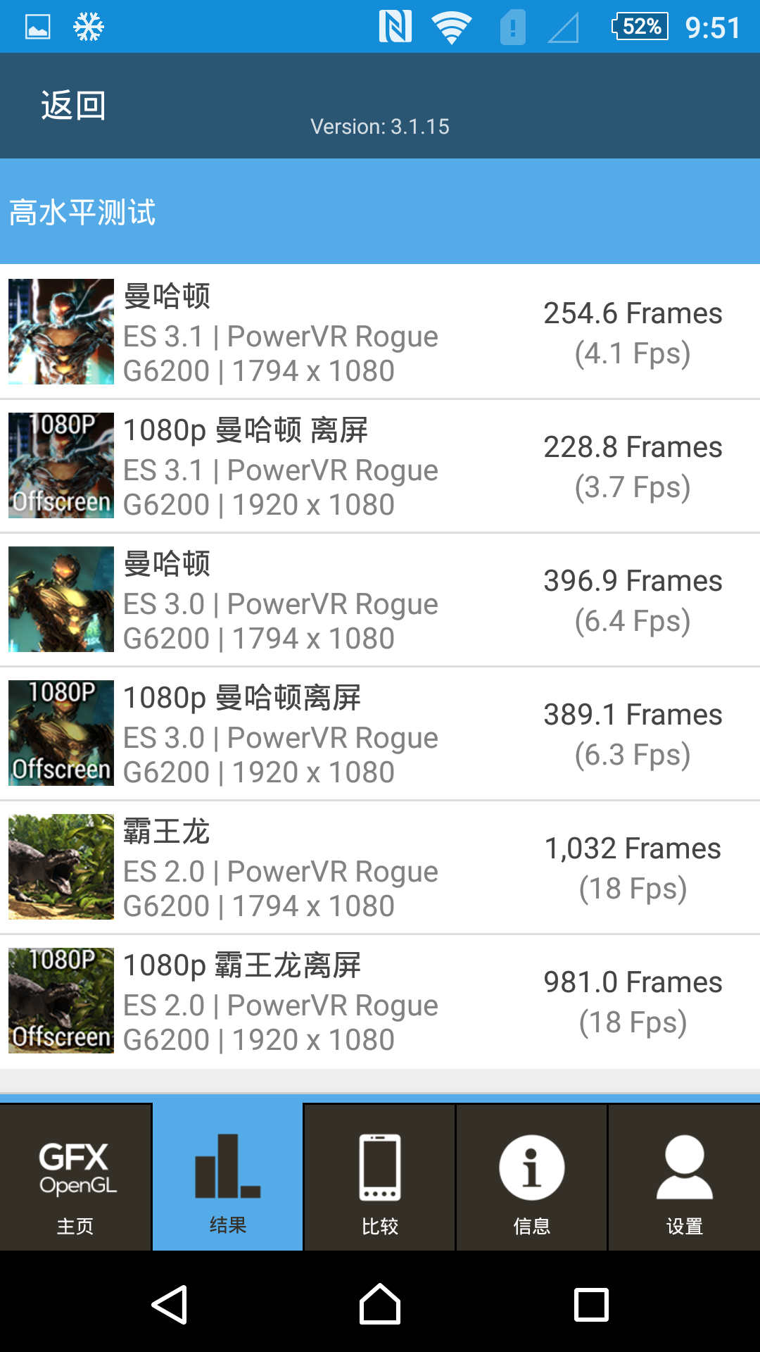 ▲Sony Xperia M5 運行 GFXBench 跑分數據一覽。