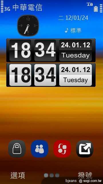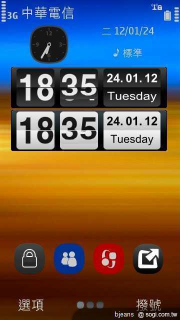 中文漢化版載點在3樓中文年日月版載點在9樓仿HTC時鐘的英文版widget,會翻頁,有黑色和白色,適用anna及belle。載點原創者Released: 21.01.2012Developer: KnightOfBlackPlatform (OS): s60v5, S^3Condition: Free..........恕刪
